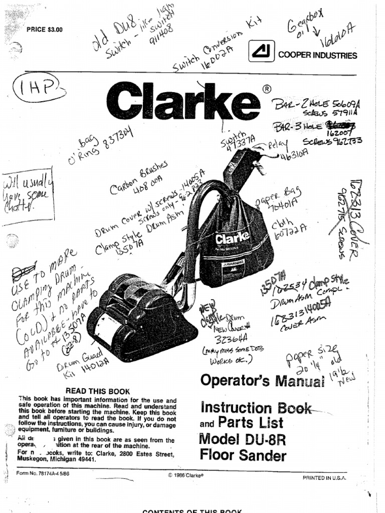 Clarke floor sander instructions.